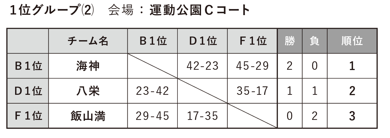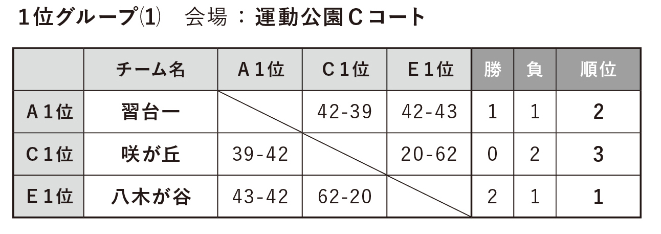※ 1 位グループのみ優勝決定戦を行う(ACE の1 位 対 BDF の1 位)